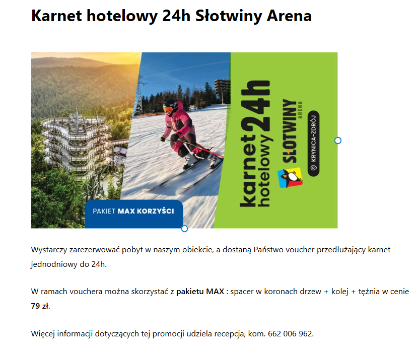 Karnet hotelowy 24h Słowiny Arena